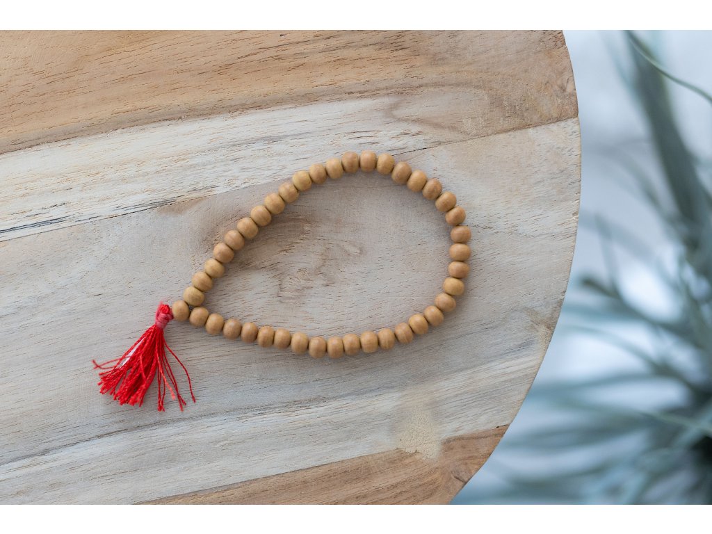 Indický „růženec“ z přibližně 27 dřevěných korálků vhodný i jako náramek na ruku. Slouží k počítání odříkávaných posvátných manter (džapy). Je vyrobena z korálků z pravého santalového dřeva, které je ceněno pro svou příjemnou a uklidňující vůni a pomáhá s koncentrací při meditaci. Kromě meditační praxe lze malu nosit i jako náramek nebo náhrdelník jako připomínku vašeho záměru.